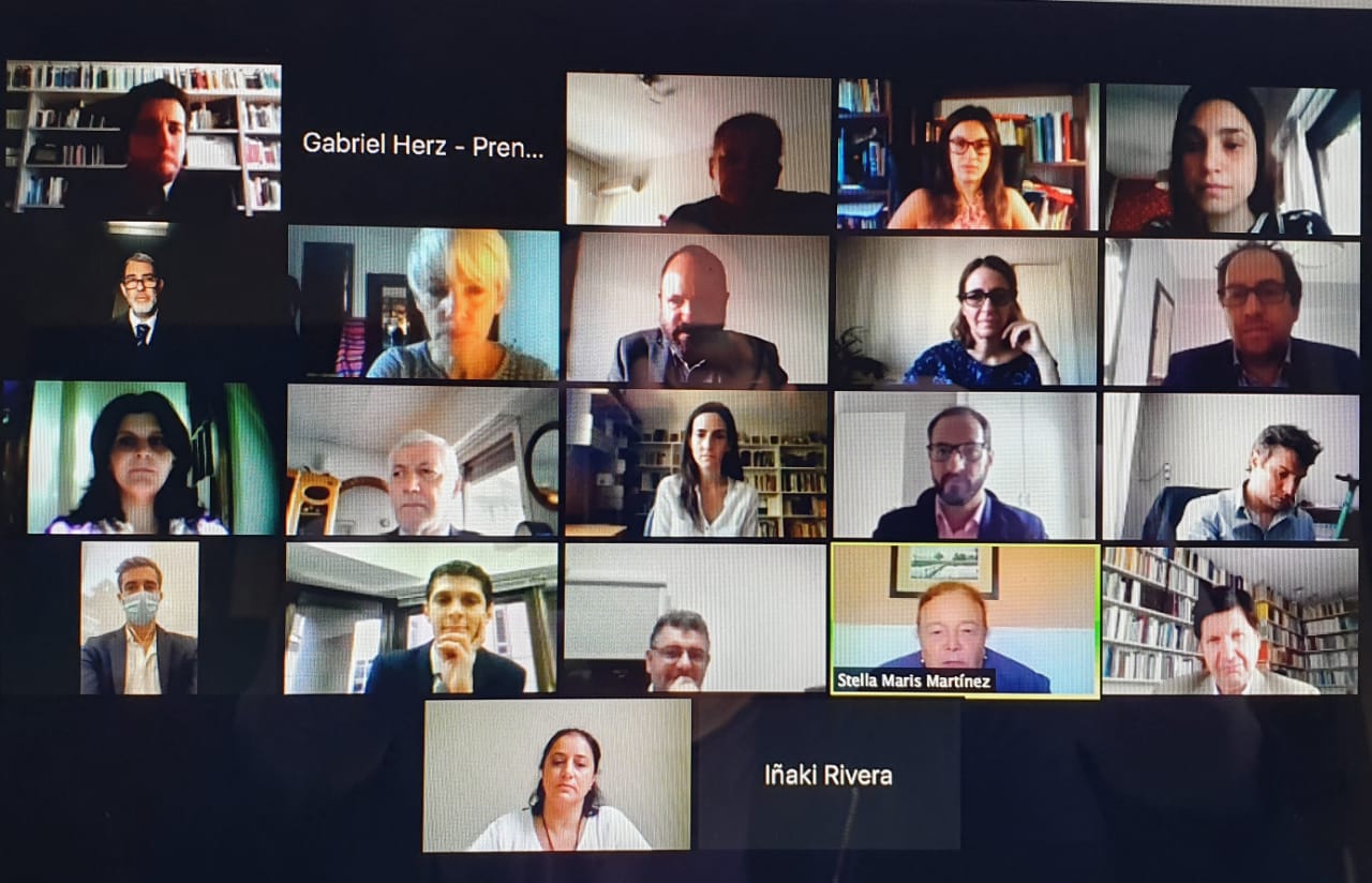En la reunión, además de la validación y del intercambio de ideas acerca de los siguientes pasos a seguir, hubo lugar para palabras elogiosas tanto de parte de la defensora general como de parte de los expertos para las y los integrantes del equipo de trabajo de la DGN. Además del mencionado Hazán, el equipo está compuesto por: el defensor público oficial (DPO) a cargo de la Defensoría Pública Oficial Adjunta N° 2 ante la Cámara Federal de Casación Penal y co-titular de la Comisión de Cárceles, Guillermo Todarello; por el DPO a cargo de la Coordinación General de Programas y Comisiones, Gustavo Iglesias; por el DPO Adjunto (Int.) y co-titular del Programa Contra la Violencia Institucional, Nicolás Laino; por el secretario letrado integrante de la Comisión de Cárceles, Leandro Destéfano –quien intervendrá en el desarrollo del proyecto en caso de ausencia de Todarello–; por la secretaria letrada a cargo de la Comisión sobre Temáticas de Género, Raquel Asensio; por el secretario letrado a cargo de la Unidad de Relaciones Institucionales en el Ámbito Internacional, Sebastián Van Den Dooren; por la jefa de departamento a cargo del Programa de Problemáticas Sociales y Relaciones con la Comunidad, Analía Alonso; y por el prosecretario letrado a cargo del Programa de Asistencia y Patrocinio Jurídico a Víctimas de Delitos, Pablo Rovatti.