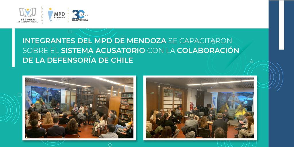 El día de ayer tuvo lugar en la ciudad de Mendoza el conversatorio “Desafíos de la implementación del sistema acusatorio y experiencias de buenas prácticas de la Defensa Penal Pública en Chile”, destinado a magistrados/as, funcionarios/as y empleados/as del Ministerio Público de la Defensa (MPD) de la jurisdicción de Mendoza. El objetivo principal de esta capacitación fue dar a conocer los desafíos que conlleva la implementación de un nuevo régimen procesal penal.