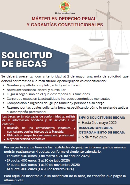 Se abrió la convocatoria para participar de la tercera cohorte del Máster en Derecho Penal y Garantías Constitucionales de la Universidad de Jaén (UJA; España).