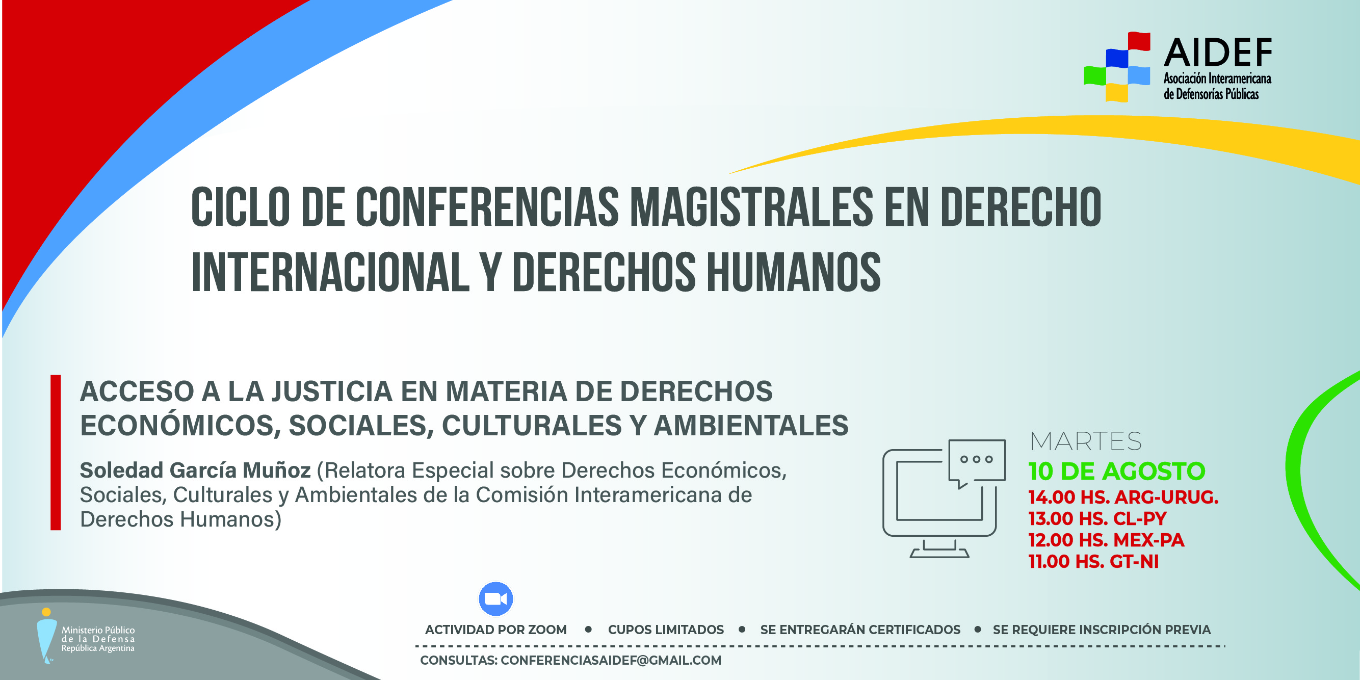 El próximo martes 10 de agosto a las 14 h de Argentina se realizará la novena disertación del ciclo de conferencias magistrales en Derecho Internacional y Derechos Humanos organizado por la Asociación Interamericana de Defensorías Públicas (AIDEF).