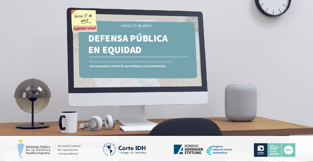 Ayer se presentó el curso “Defensa Pública en equidad. Perspectivas de género e interseccionalidad para una actuación eficaz. Una experiencia virtual de aprendizaje y experimentación”, en donde expusieron el Secretario Ejecutivo de la Corte Interamericana de Derechos Humanos, Dr. Pablo Saavedra; la Secretaria de Capacitación y Jurisprudencia de la Defensoría General de la Nación, Dra. Julieta Di Corleto; la Coordinadora General el PENT/FLACSO, Gisela Schwartzman; y el coordinador de Proyectos, Programa Estado de Derechos para Latinoamérica de la Fundación Konrad Adenauer, Felipe Franco.
