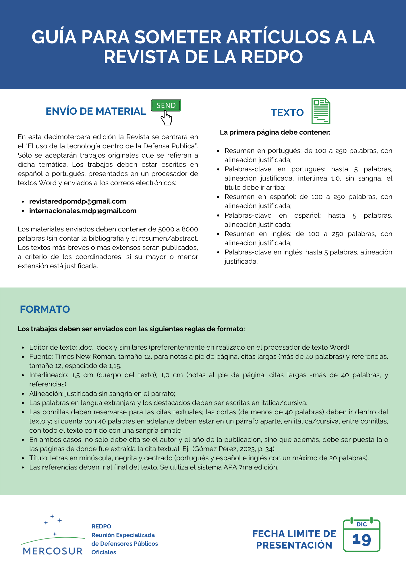 Fecha límite para remitir artículos: lunes 16 de febrero de 2026.