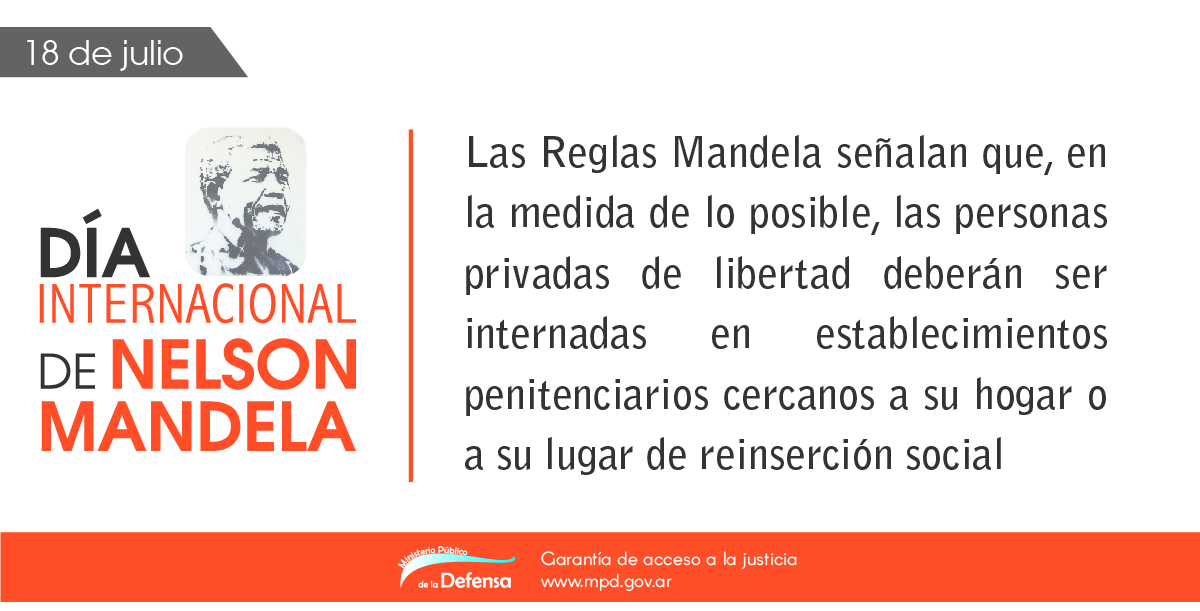 A 100 años del nacimiento de Nelson Mandela, la Defensoría General de la Nación reitera su compromiso con la aplicación y promoción de las Reglas que llevan su nombre, y hace un llamado amplio a la reflexión sobre los propósitos de la cárcel y las condiciones en que deben cumplir su pena las personas detenidas.