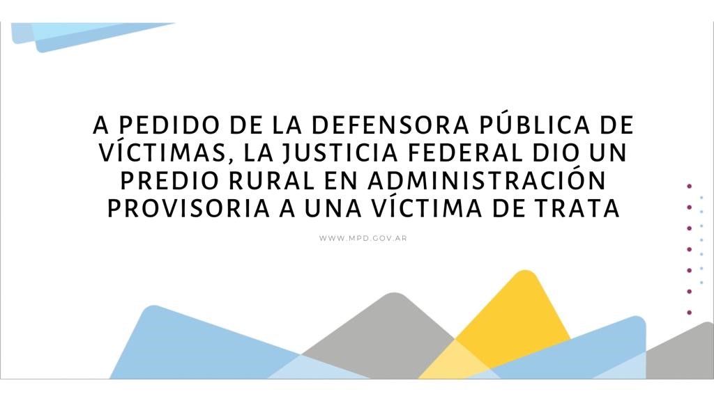 El Juzgado Federal Nº 3 de Mar del Plata hizo lugar a un pedido de la defensora pública de víctimas de la provincia de Buenos Aires, Dra. Inés Jaureguiberry, para que se le otorgue la administración provisoria de un predio rural a una víctima de trata de personas con fines de explotación laboral. El predio se encuentra preventivamente embargado por el juez federal interviniente, Dr. Santiago Inchausti.