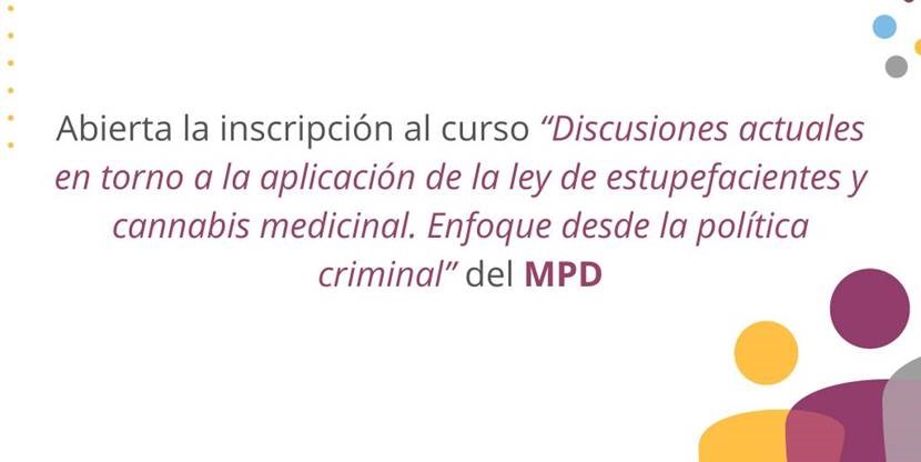 Durante el mes de junio la Escuela de la Defensa Pública del Ministerio Público de la Defensa (MPD) realizará el curso en modalidad virtual “Discusiones actuales en torno a la aplicación de la ley de estupefacientes y cannabis medicinal. Enfoque desde la política criminal”.