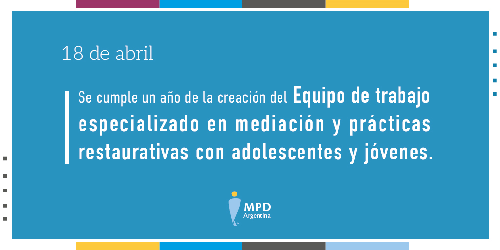 El próximo 18 de abril se cumple un año de la creación del Equipo de trabajo Especializado en Mediación y Prácticas Restaurativas con Adolescentes y Jóvenes por parte de la Defensora General de la Nación con carácter de proyecto piloto mediante Resolución DGN N°403/2024.