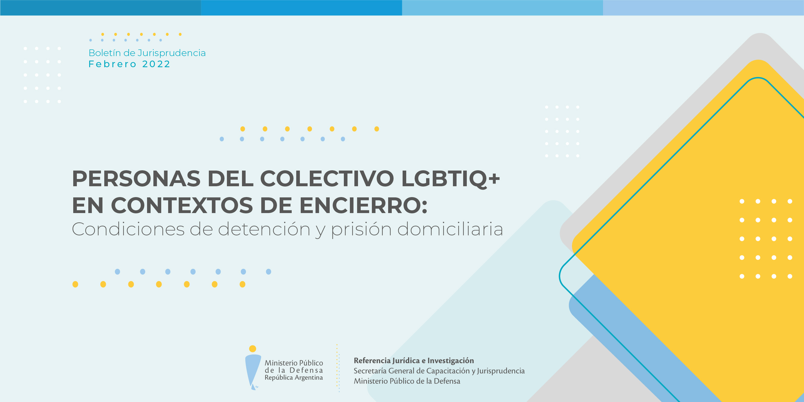 La Secretaría General de Capacitación y Jurisprudencia (SGCJ) de la Defensoría General de la Nación publicó su boletín "Personas del colectivo LGBTIQ+ en contextos de encierro: condiciones de detención y prisión domiciliaria”.