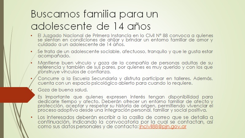 BUSCAMOS FAMILIA PARA UN ADOLESCENTE DE 14 AÑOS