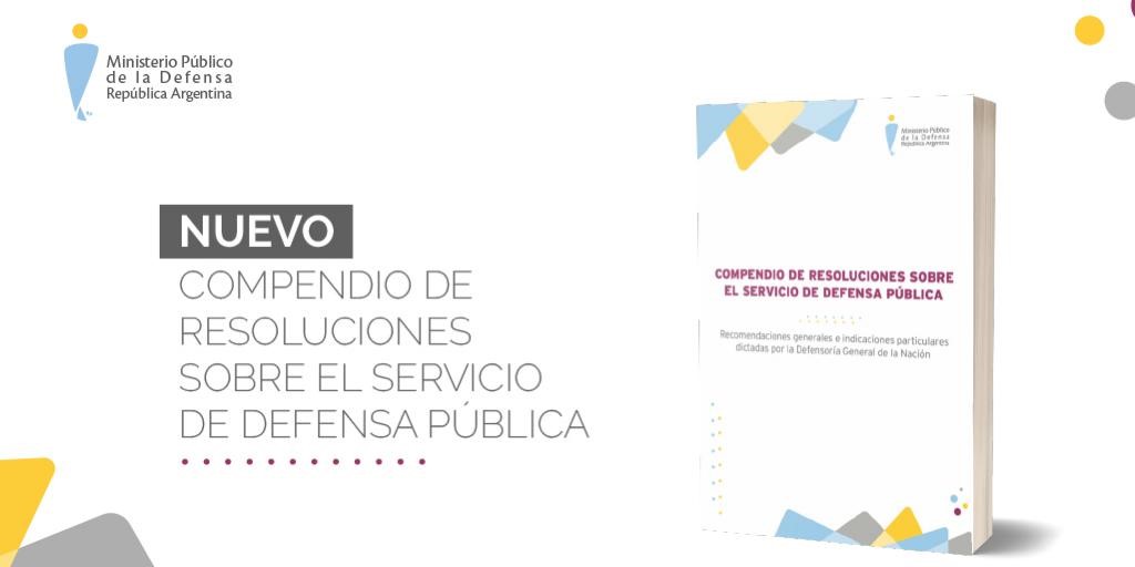 La Defensoría General de la Nación presenta el “compendio de resoluciones sobre el servicio de Defensa Pública”, con el objetivo de reunir, concordar e identificar la totalidad de recomendaciones generales vigentes en el Ministerio Público de la Defensa (MPD). La publicación fue elaborada por la Secretaría General de Política Institucional, con la colaboración de la Coordinación de Comunicación Institucional, Prensa y Relaciones con la Comunidad y del Departamento de Informática, y estará alojada dentro de la intranet institucional para ser descargada por todos/as los/as integrantes del MPD.