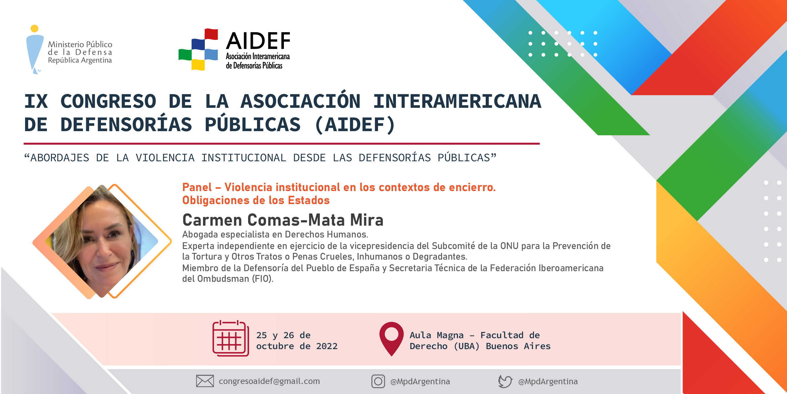 Carmen Comas-Mata Miras, abogada especialista en derechos humanos; experta independiente en ejercicio de la vicepresidencia del Subcomité de Naciones Unidas para la Prevención de la Tortura y Otros Tratos o Penas Crueles, Inhumanas o Degradantes; miembro de la Defensoría del Pueblo de España y secretaria técnica de la Federación Iberoamericana del Ombudsman.