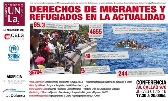 El jueves 1º de diciembre, de 17.30 a 20 h, en el auditorio Guillermo Díaz Lestrem de la Defensoría General de la Nación (Av. Callao 970, CABA), tendrá lugar la conferencia “Derechos de migrantes y refugiados en la actualidad. Avances y desafíos”.