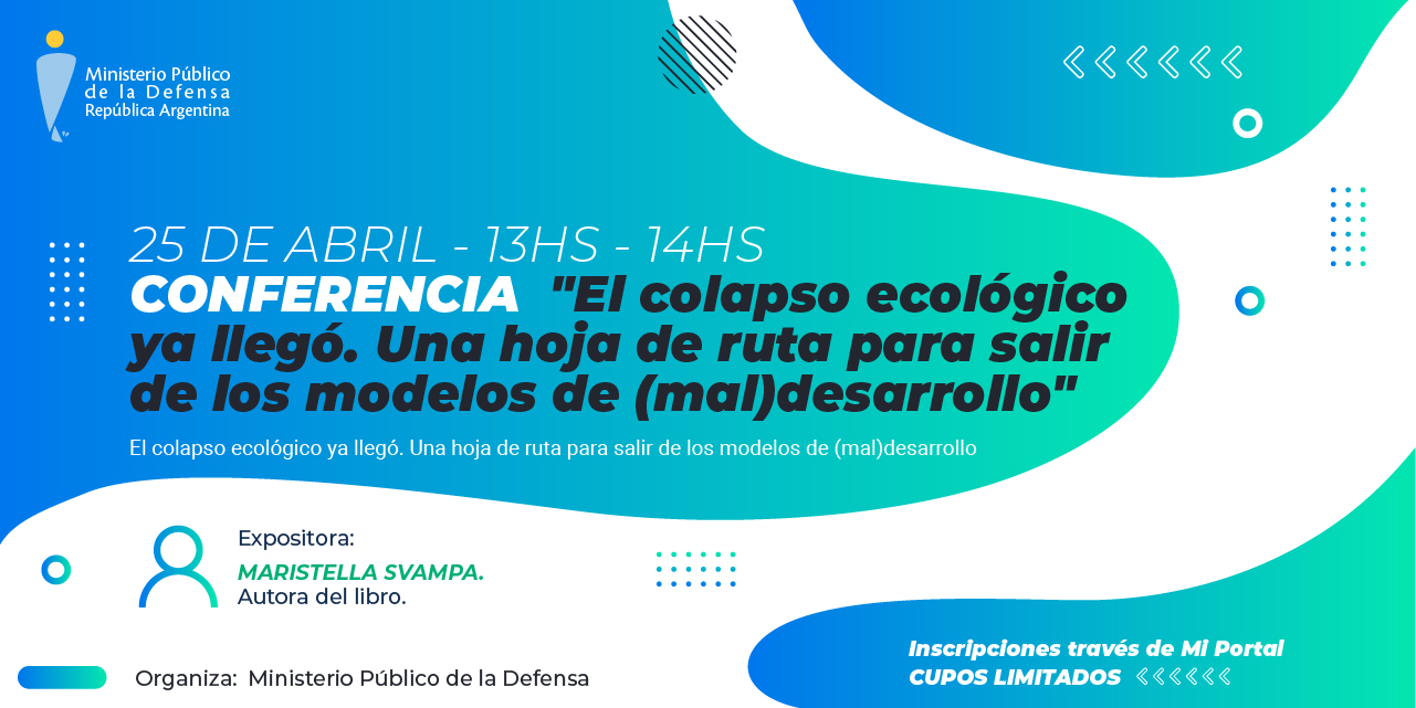 El próximo lunes 25 de abril a las 13 h, se llevará adelante la conferencia “El colapso ecológico ya llegó. Una hoja de ruta para salir de los modelos de (mal)desarrollo”, dictada por la autora del libro homónimo e investigadora superior del CONICET, Dra. Maristella Svampa.