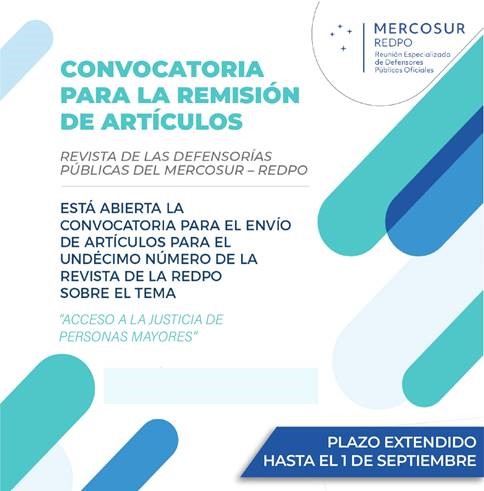 Extendemos a los y las integrantes del Ministerio Público de la Defensa la convocatoria al envío de artículos para la próxima edición de la Revista de la Reunión Especializada de Defensoría Públicas Oficiales (REDPO) del Mercosur.