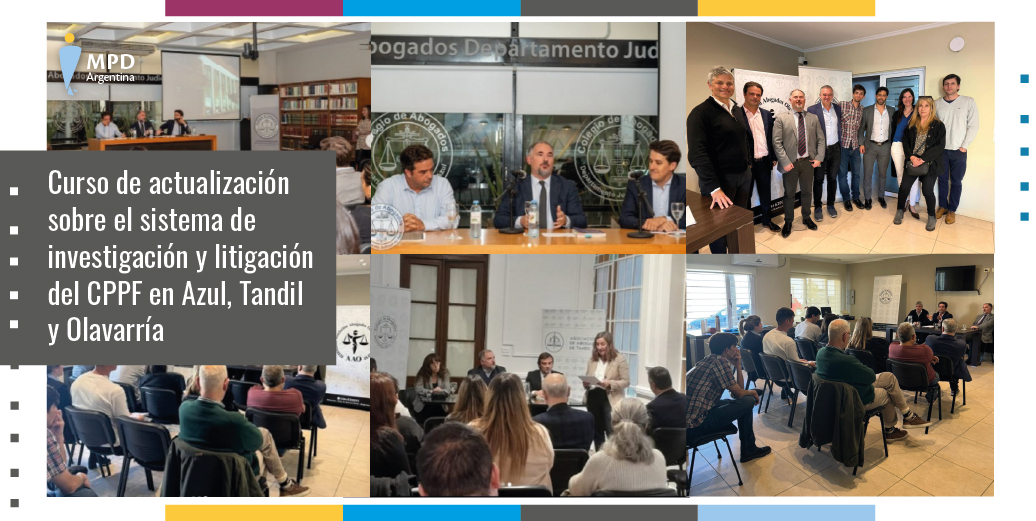 Durante el mes de agosto, las Unidades de Defensa Pública de la jurisdicción de Mar del Plata participaron en tres encuentros del curso de actualización sobre el sistema de investigación y litigación del Código Procesal Penal Federal, organizado por el Colegio Público de Abogados de Azul. Las actividades se desarrollaron en las tres sedes que el Colegio tiene en Azul, Tandil y Olavarría.