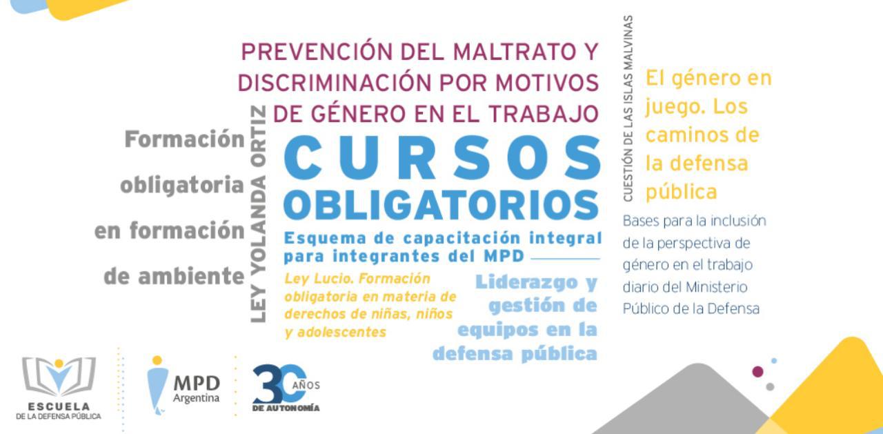 La Escuela de la Defensa Pública recuerda que se encuentra disponible la inscripción a los cursos de cumplimiento obligatorio para los/las integrantes del Ministerio Público de la Defensa, que son los que se detallan a continuación: