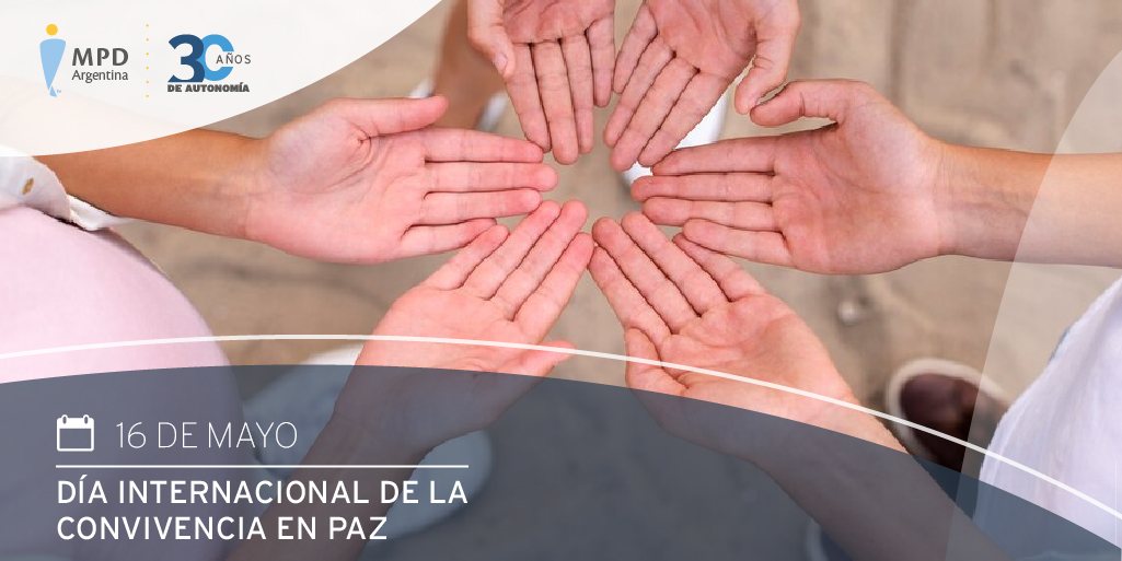 Cada 16 de mayo se celebra el Día Internacional de la Convivencia en Paz, declarado por la Asamblea General de las Naciones Unidas en su resolución 72/130. Esta resolución fue el fruto de un gran trabajo previo de la Asamblea General y reconoce varias resoluciones predecesoras que evidencian la necesidad de un tratamiento distinto de los conflictos, de cualquier orden que sea. Allí se “Invita a todos los Estados Miembros a que sigan promoviendo la reconciliación para contribuir a hacer realidad la paz duradera [...] a través de medidas conciliadoras y servicios altruistas, entre otros medios, y alentando el perdón y la compasión entre las personas”.