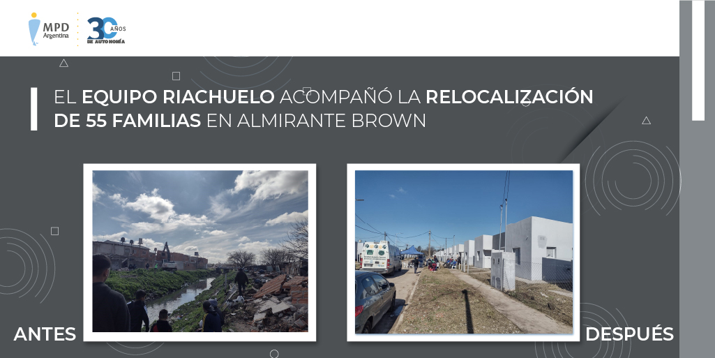 Durante las jornadas del 6 y 7 agosto, integrantes del Equipo Río Matanza-Riachuelo de la Defensoría General de la Nación (DGN) acompañaron el proceso de relocalización de 55 familias en el complejo “Barrio Lindo II”, en el Municipio de Almirante Brown, Provincia de Buenos Aires. La mudanza se efectuó en el marco de la ejecución de causa judicial "Beatriz Mendoza c/ Estado Nacional", cuyo origen es la afectación de la calidad de vida de los habitantes de la cuenca por la contaminación del río Matanza Riachuelo.