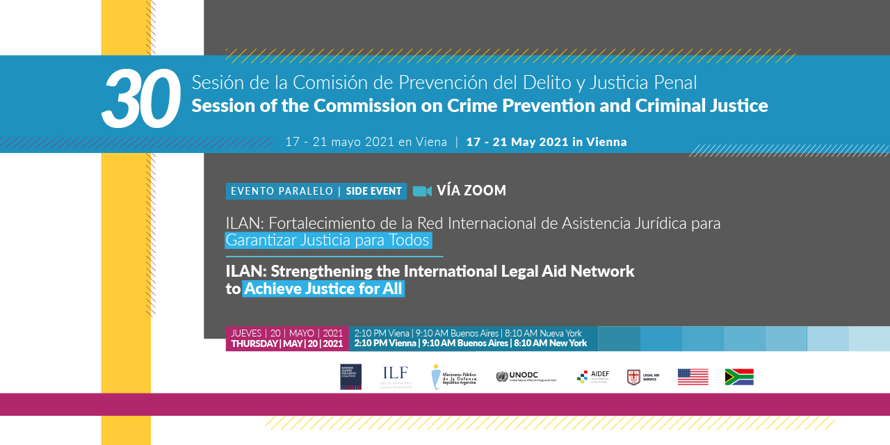 El evento, que se llevará a cabo en el marco de la 30va Sesión de la Comisión de Prevención del Delito y Justicia Penal (CCPCJ) de la ONU que sesionará en Viena, Austria, es co-organizado -además del MPD de Argentina- por Estados Unidos, la República de Sudáfrica, la Sección Justicia de la Oficina de las Naciones Unidas contra la Droga y el Delito (ONUDD), The International Legal Foundation (ILF), la Coalición de Líderes Empresariales por la Justicia, el Servicio de Asistencia Jurídica de Georgia y la Asociación Interamericana de Defensorías Públicas (AIDEF).