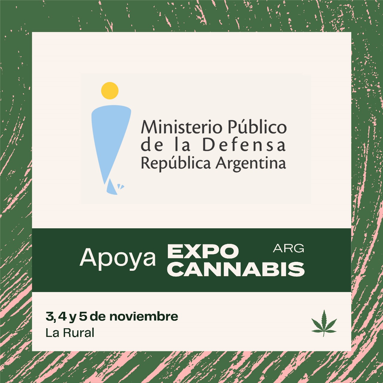 A través de la Resolución DGN Nº1217/23, el Ministerio Público de la Defensa de la Nación (MPD) brindó apoyo institucional a la cuarta edición de Expo Cannabis Argentina, que se realizará los días 3, 4 y 5 de noviembre próximos en el predio de La Rural (Av. Sarmiento 2704, CABA).
