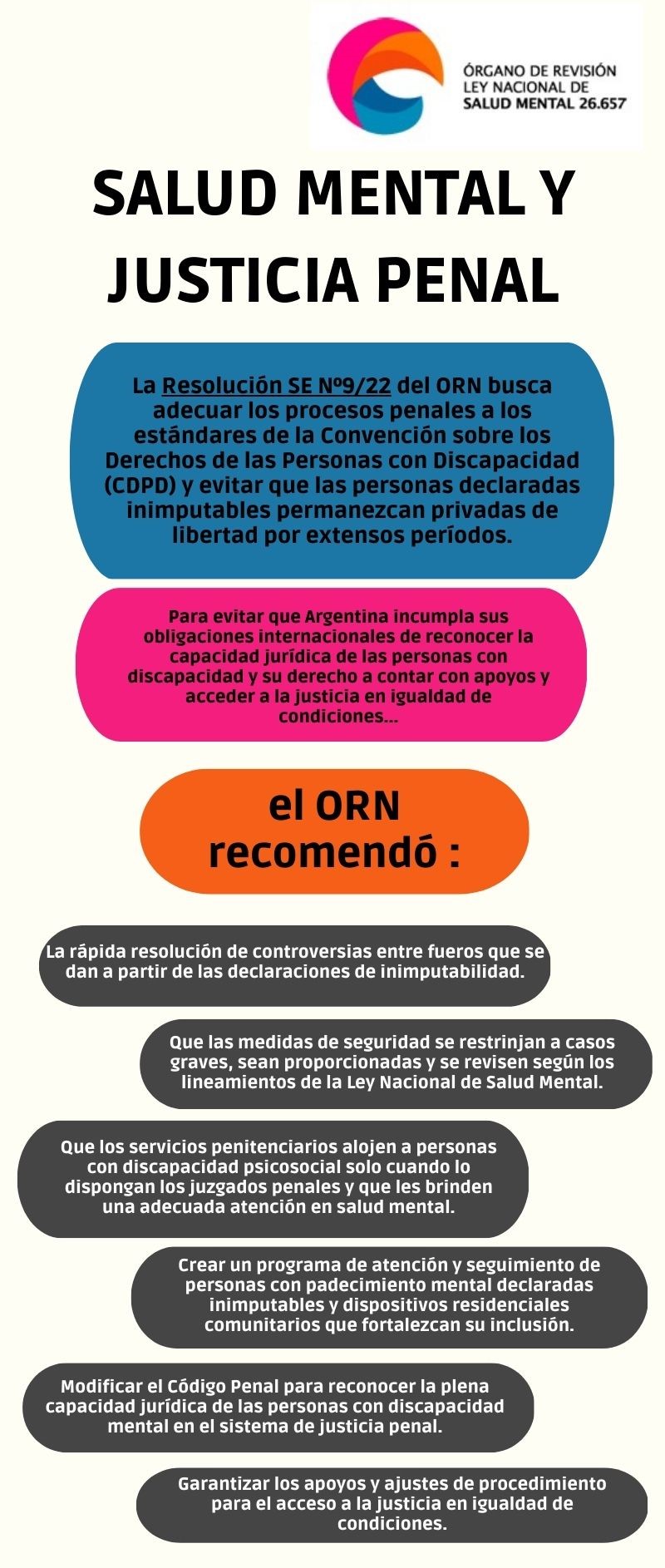 La Secretaría Ejecutiva (SE) del Órgano de Revisión de Salud Mental de la Nación (ORN) emitió recomendaciones para la actuación del sistema de justicia penal ante las personas con discapacidad psicosocial o intelectual que son declaradas inimputables y sobre las que se disponen medidas de seguridad.