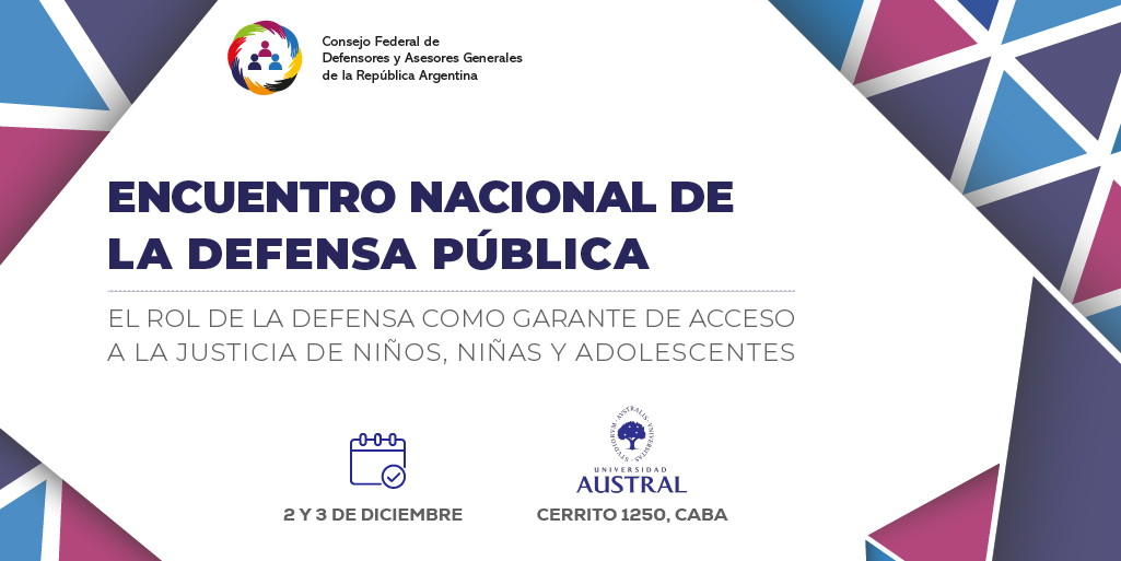 Los días 2 y 3 de diciembre se realizará en la Ciudad Autónoma de Buenos Aires el Encuentro Nacional de la Defensa Pública, que se desarrollará bajo la consigna “El rol de la defensa como garante de acceso a la justicia de niños, niñas y adolescentes.”