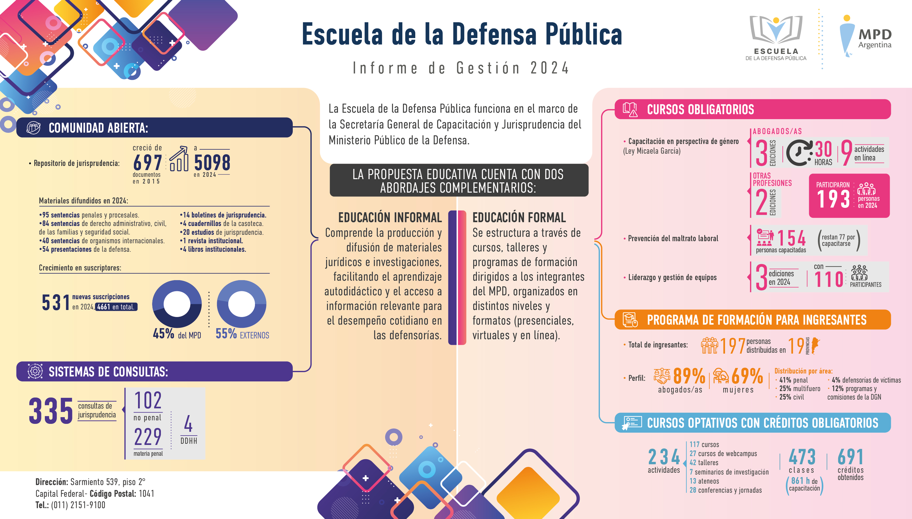La Escuela de la Defensa Pública (EDP) del Ministerio Público de la Defensa (MPD) presenta su informe de gestión del año 2024.