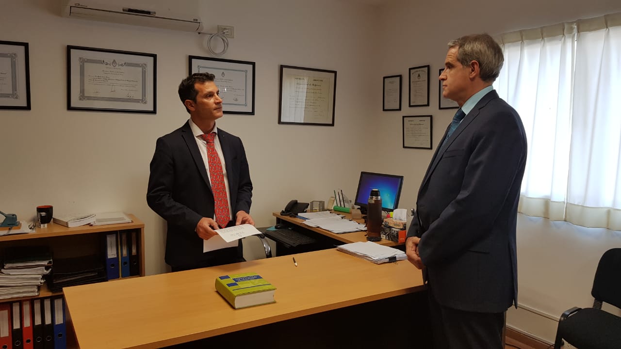 Finalmente, el día viernes 7, Martín Andrés Gesino, titular de la Defensoría Pública Oficial ante el Tribunal Oral en lo Criminal Federal Nº 2 de Rosario, provincia de Santa Fe, tomó juramento a Marcelo Luis Terenzio, quien actuará en calidad de vocal titular en representación de la FACA. La Resolución DGN Nº 1275/2018 delegó en Gesino la facultad de recibir este juramento.