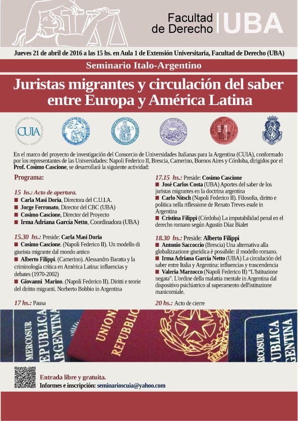 Seminario Italo-Argentino : JURISTAS MIGRANTES Y CIRCUALCIÓN DEL SABER ENTRE EUROPA Y AMÉRICA LATINA