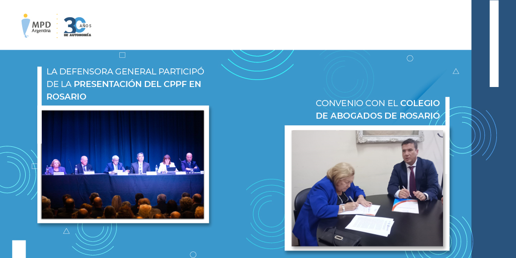 Durante su intervención en el Consejo Asesor Interinstitucional, la Defensora también anunció la firma de un convenio de colaboración mutua entre el MPD y el Colegio de Abogados de la 2a. Circunscripción Judicial de Rosario, con el fin de trabajar y capacitarse en conjunto sobre la implementación del procedimiento acusatorio. Este acuerdo se concretó también el día de ayer con la firma de la titular del MPD y del Presidente del Colegio, el Dr. Lucas Galdeano,