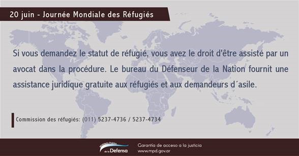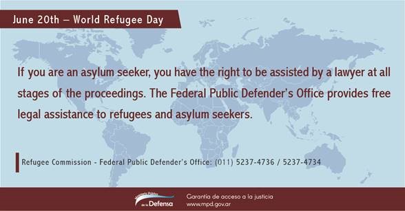 Para garantizar el acceso a la justicia y el respeto de los derechos humanos de los refugiados y solicitantes del reconocimiento de dicha condición, la Defensora General de la Nación, Stella Maris Martínez, creó en 2007 la Comisión para la Asistencia Integral y Protección al Refugiado y Peticionante de Refugio.