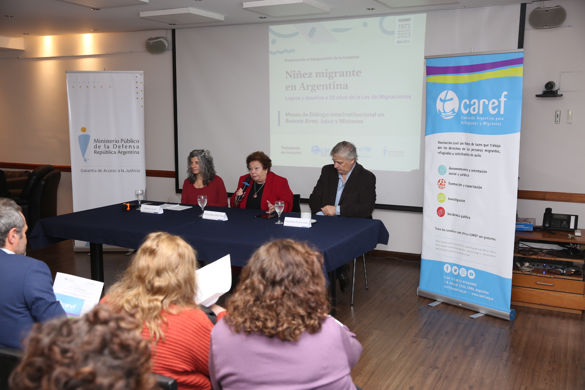 El evento contó con la presencia del Dr. Pablo Ceriani Cernadas, integrante del Comité de Naciones Unidas para la Protección de los Derechos de los Trabajadores Migrantes y Miembros de sus Familias; la Lic. Gisela Clivaggio, directora nacional de Gestión y Desarrollo Institucional de la SENAF; magistrados/as y funcionarios/as del MPD y público en general.