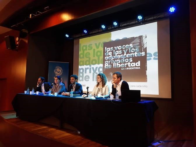 El 13 de noviembre Unicef presentó en el salón Auditorio de la Organización de Estados Iberoamericanos “Las Voces de las y los Adolescentes Privados de Libertad en Argentina”, un estudio sobre chicas y chicos privados de libertad en Centros Cerrados, realizado en conjunto con el Centro de Estudios de Población (CENEP). La Defensoría General de la Nación (DGN), representada por Damián Muñoz y María García Morabito, fue el único organismo convocado por los organizadores para acompañar la presentación.