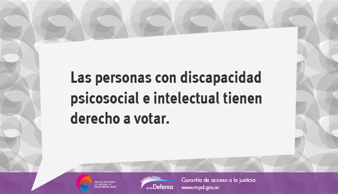 Además de la normativa internacional, el derecho al voto tiene como fundamento elementos de la legislación nacional. Principalmente de la Ley Nacional de Salud Mental N° 26.657 que estableció que todas las sentencias de incapacidad “deberán especificar las funciones y actos que limitan, procurando que la afectación de la autonomía personal sea la menor posible”, de modo que, si el juez no limita expresamente el derecho al voto, los internados se encuentran habilitados para hacerlo.