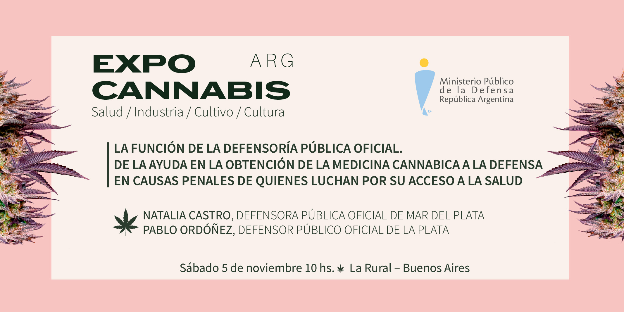 El Ministerio Público de la Defensa de la Nación (MPD) participará en la tercera edición de Expo Cannabis, a realizarse los días 4, 5 y 6 de noviembre próximos en el predio de La Rural (Av. Sarmiento 2704, CABA).