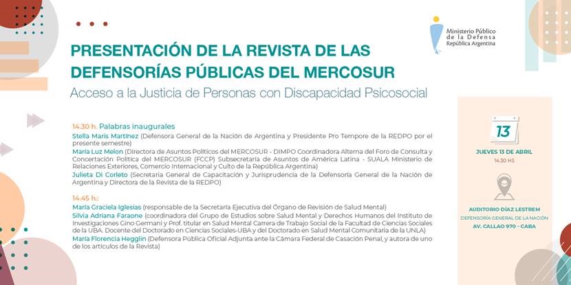 El jueves 13 de abril a las 14.30 hs. se presentará un nuevo número de la Revista de las Defensorías Públicas del Mercosur. La actividad tendrá lugar en la Defensoría General de la Nación (Callao 970, CABA).