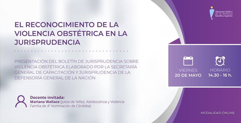 El próximo viernes 20 de mayo a las 14.30h., la Secretaría de Capacitación y Jurisprudencia de la Defensoría General de la Nación (DGN) presentará su boletín sobre violencia obstétrica. El evento se llevará a cabo en el marco de la semana mundial del parto respetado, que abarca desde el lunes 16 hasta el domingo 22.