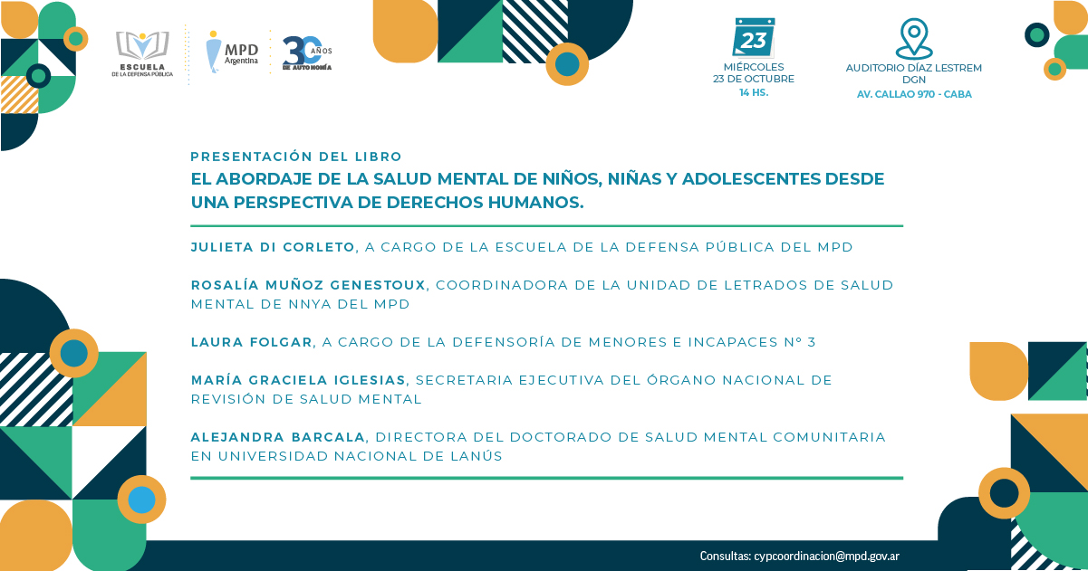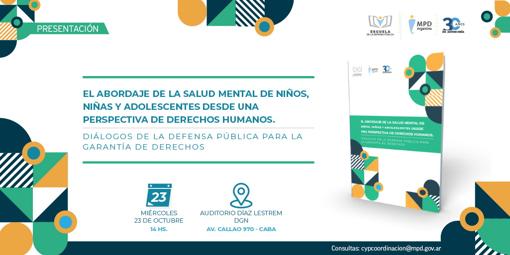 El próximo miércoles a las 14 h., se presentará en el Auditorio Guillermo Díaz Lestrem de la Defensoría General de la Nación (Av. Callao 970, CABA) el libro “El abordaje de la salud mental de niños, niñas y adolescentes desde una perspectiva de derechos humanos. Diálogos de la Defensa Pública para la garantía de derechos”.