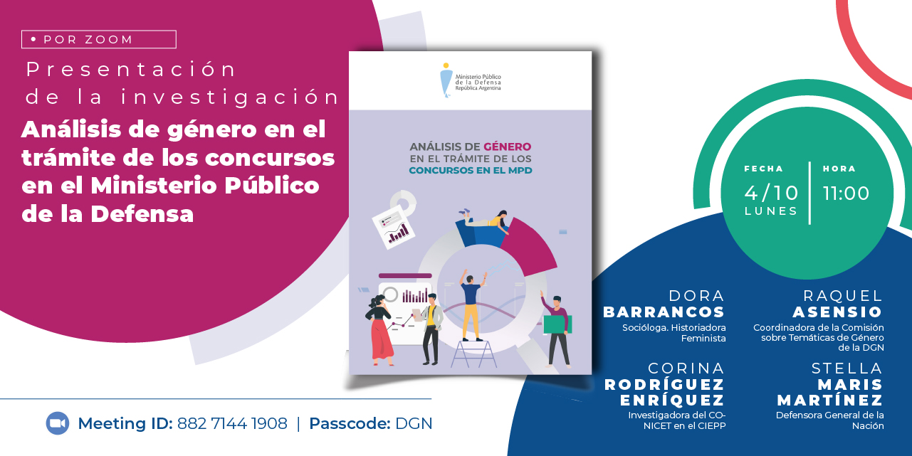 La presentación de la investigación Análisis de género en el trámite de los concursos del MPD se realizará el próximo 4 de octubre a las 11 de la mañana de manera virtual.