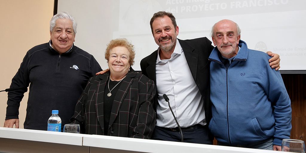 En la tarde de ayer, en el Auditorio de la Unión de Empleados de la Justicia Nacional (UEJN), se llevó a cabo el relanzamiento del “Proyecto Francisco”, una iniciativa conjunta entre el Ministerio Público de la Defensa, la UEJN y la Familia Grande de los Hogares de Cristo. Participaron del acto la Defensora General de la Nación, Dra. Stella Maris Martínez; el Secretario General de la UEJN, Dr. Julio Piumato; y el padre Lorenzo “Toto” de Vedia, de la Parroquia Virgen de Caacupé de Barracas, en representación de los Hogares de Cristo.