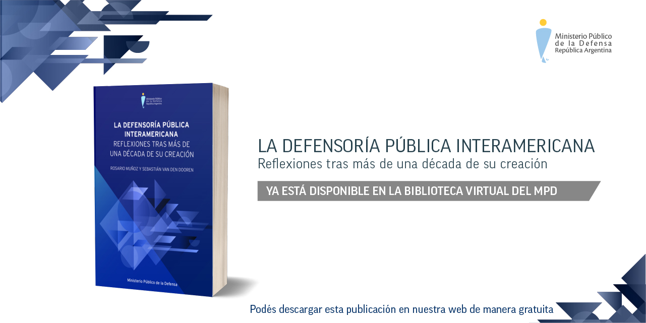 El Ministerio Público de la Defensa de la República Argentina lanzó la publicación “La defensoría pública Interamericana. Reflexiones tras más de una década de su creación”. Elaborado en base a entrevistas realizadas por Rosario Muñoz y Sebastián Van Den Dooren del Área de Relaciones Institucionales en el Ámbito Internacional de la Defensoría General de la Nación, el libro recoge experiencias de la labor desplegada por integrantes del Cuerpo de Defensores/as Públicos/as Interamericanos/as (DPI).
