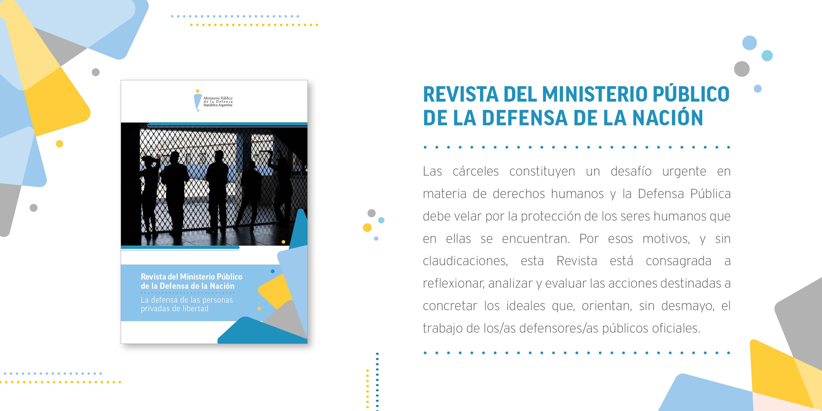 Ya se encuentra disponible en nuestra página web la Revista del Ministerio Público de la Defensa N°15 dedicado a “La defensa de las personas privadas de libertad”. La temática de la publicación fue elegida en noviembre del 2019. Históricamente, la atención de las personas privadas de la libertad ha sido un tema sensible dentro del Ministerio Público de la Defensa (MPD).
