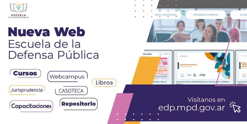 La nueva web de la Escuela se encuentra en https://edp.mpd.gov.ar/, pero también se la puede visitar haciendo click en el destacado correspondiente en la página del MPD (www.mpd.gov.ar).