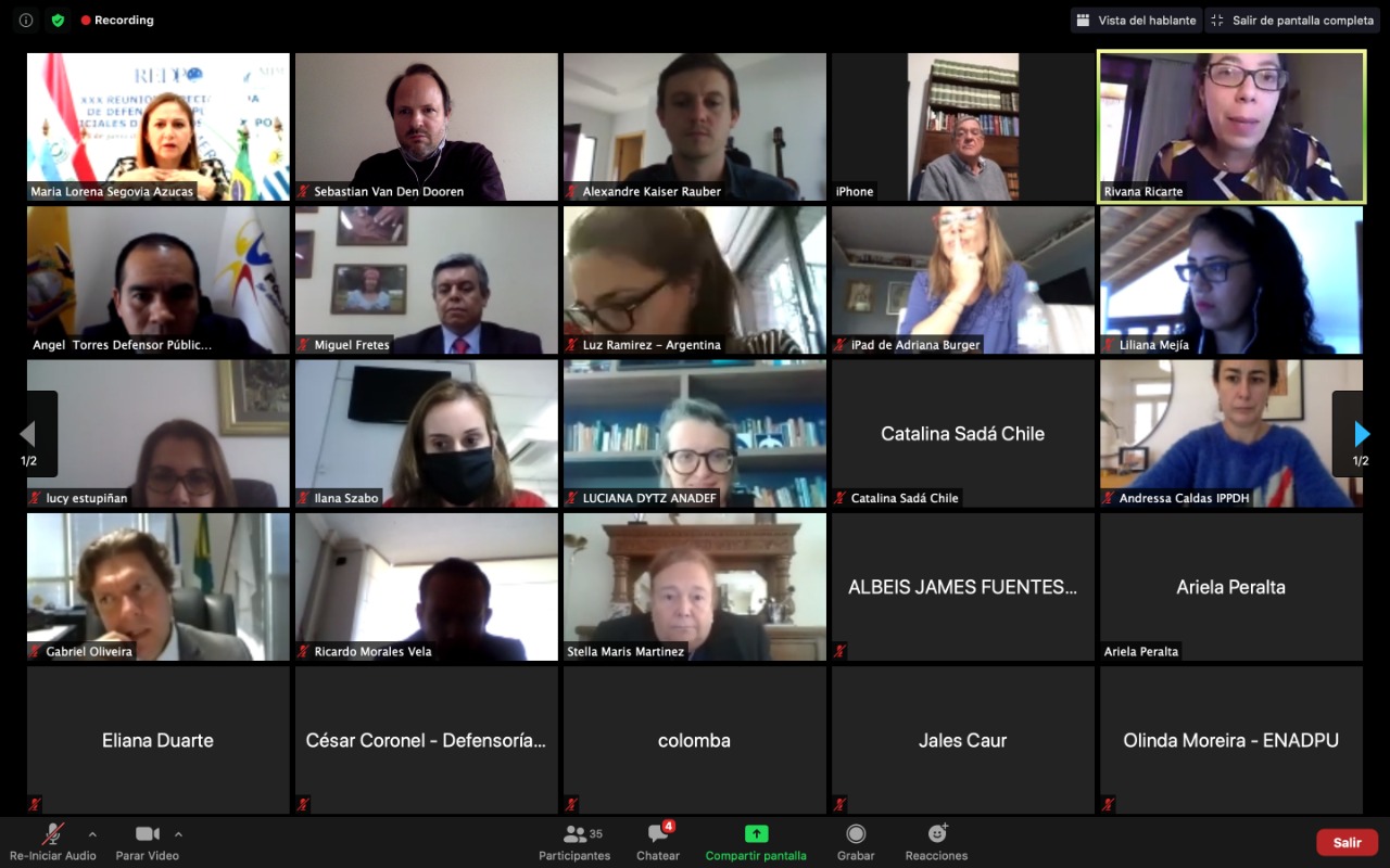 En el día de ayer tuvo lugar la XXX Reunión Ordinaria de la Reunión Especializada de Defensores Públicos Oficiales del MERCOSUR (REDPO). El encuentro se realizó por videoconferencia y contó con la presencia de las delegaciones de tres Estados parte del Mercosur: Paraguay (que ocupa la presidencia pro témpore del organismo), Argentina y Brasil; y de tres Estados asociados: Chile, Colombia y Ecuador.