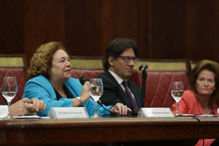 Stella Maris Martínez saludó por su aniversario a la Asociación y dijo estar “muy contenta que en este 90º cumpleaños sea presidida por una mujer. Eso ya es digno de una satisfacción especial. Y además, alguien tan luchadora como es nuestra actual presidente”, en referencia a Díaz Cordero. Posteriormente, resaltó la ayuda que brinda la Asociación a quienes están a cargo de una institución federal para integrar a los magistrados y funcionarios de todo el país. “Este es un mérito que hay que agradecerle a la Asociación de Magistrados, a lo largo de todo su desempeño, a lo largo de todas las presidencias, ya que nunca se olvidó que somos federales”, dijo.