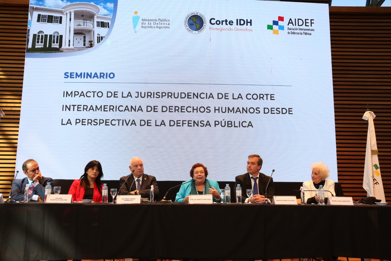 Hoy por la mañana tuvo lugar el acto inaugural del seminario en el que participó la Dra. Stella Maris Martínez, defensora general de Argentina y también coordinadora general de la Asociación Interamericana de Defensorías Públicas (AIDEF); junto con el presidente de la Corte IDH, Dr. Ricardo Pérez Manrique; la presidenta de la Comisión Interamericana de Derechos Humanos (CIDH), Dra. Julissa Mantilla Falcon; el ministro de Justicia y Derechos Humanos de la Nación, Dr. Martín Soria; y el director de Contencioso Internacional en Materia de DDHH de la Cancillería argentina, Dr. Javier Salgado. La apertura contó también, como invitada especial, con la palabra de la presidenta de la Asociación de Abuelas de Plaza de Mayo, Sra. Estela de Carlotto