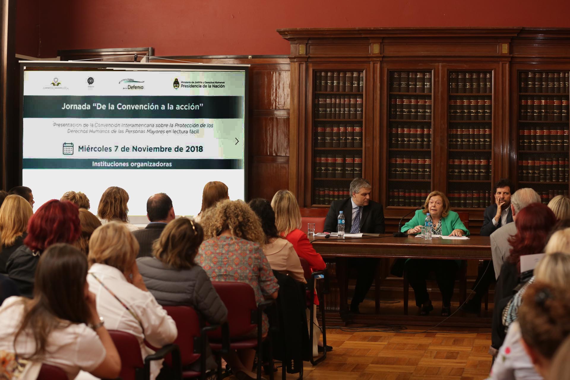Durante la jornada se realizaron dos paneles en los que participarán funcionarias/os y especialistas vinculadas/os a la temática de las personas mayores: “Preparación del texto de la Convención Interamericana sobre la Protección de los Derechos Humanos de las Personas Mayores en Lectura Fácil” y “El nuevo paradigma. Envejecer activo. Prevención. Importancia de la democratización de la información y el empoderamiento”.
