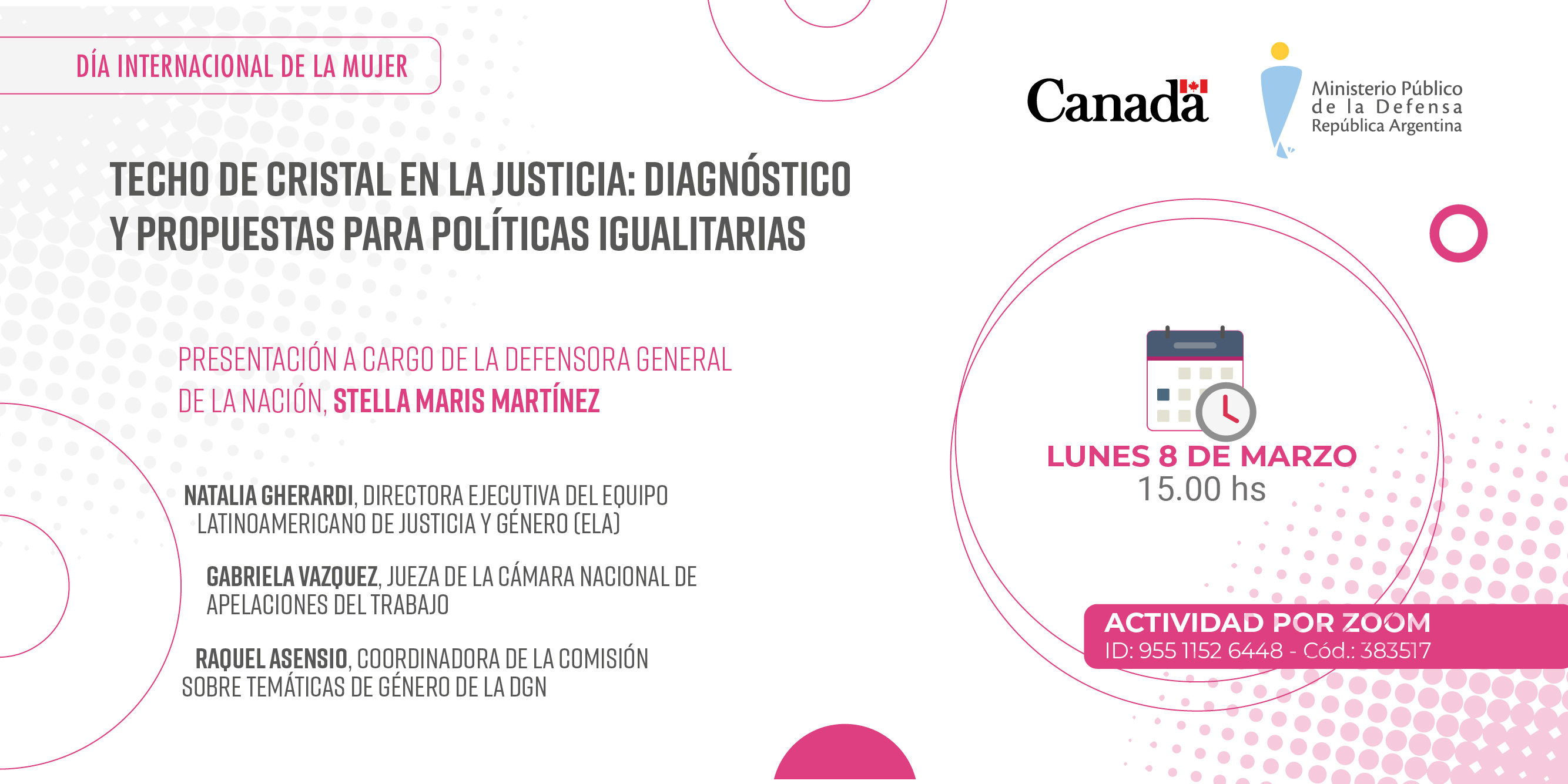 Con motivo de conmemorarse el Día Internacional de la Mujer, el próximo lunes 8 de marzo a las 15 h se realizará, a través de la plataforma Zoom, la actividad “Techo de cristal en la justicia: diagnóstico y propuestas para políticas igualitarias”.