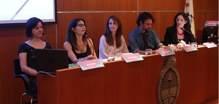 Diana Maffía explicó que los estereotipos de género se pueden construir en lugares aparentemente neutros. “Somos violentos cuando ponemos en práctica los estereotipos. Hay una naturalización de las jerarquías de género basadas en la biología”, dijo y agregó: “Una comunicación contraria al binarismo hombre-mujer es una urgencia”.