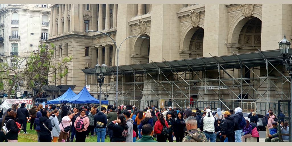 Hoy por la mañana, vecinos y vecinas de distintos barrios afectados a la causa “Mendoza” realizaron una manifestación en Plaza Lavalle para denunciar la paralización de las obras comprometidas en la ejecución de la causa. A su vez, solicitaron una audiencia ante la Corte Suprema de Justicia de la Nación (CSJN).