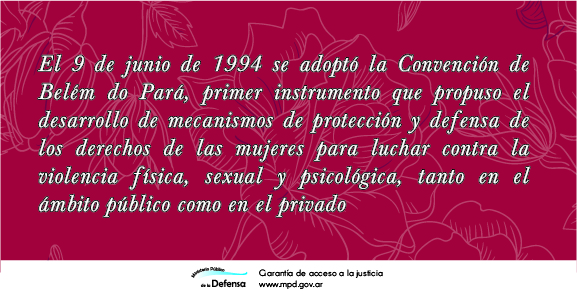 La Defensoría General de la Nación (DGN) celebra un nuevo aniversario de la Convención de Belém do Pará, y expresa su compromiso inquebrantable con su cumplimiento y la promoción de los derechos de las mujeres en todos los ámbitos en los que interviene.